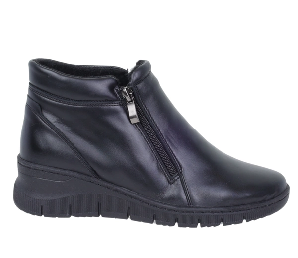 Czarne eleganckie trzewiki damskie ocieplane buty na zimę komfortowe ze skóry naturalnej Gino Fabiani