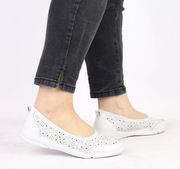 Białe skórzane baleriny damskie sportowe czółenka płaskie Jezzi
