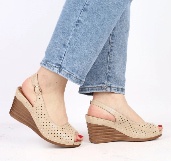 Eleganckie i wygodne sandały beżowe na niskiej koturnie Jezzi