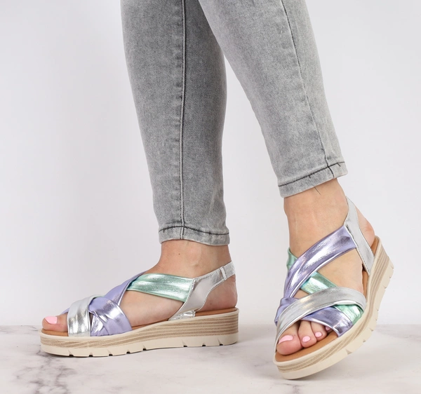 Kolorowe błyszczące sandały damskie hiszpańskie na platformie El Pimpi - Made in Spain