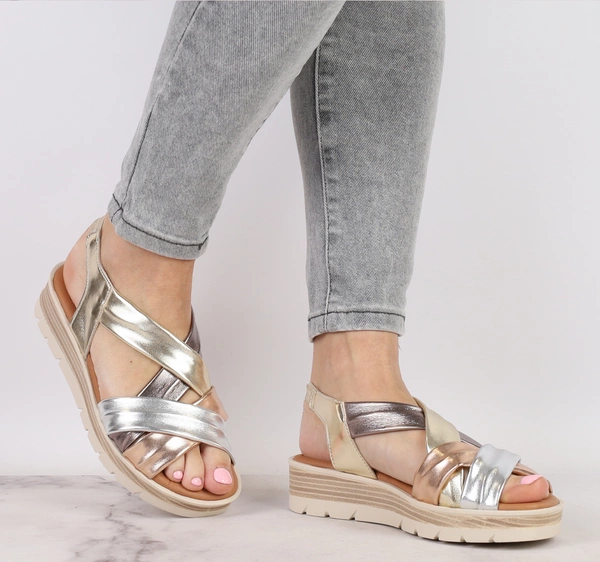 Metaliczne sandały damskie na lekkiej grubej podeszwie El Pimpi - Made in Spain