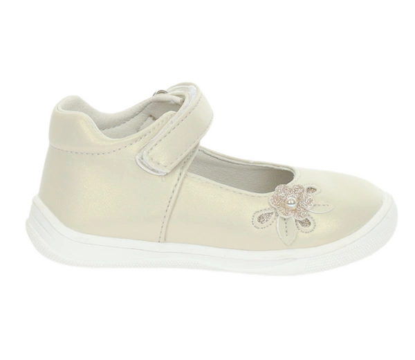Białe balerinki dla dziewczynki czółenka zapinane na pasek beżowe MissE