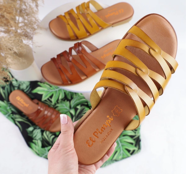 Skórzane klapki damskie płaskie Hiszpańskie El Pimpi