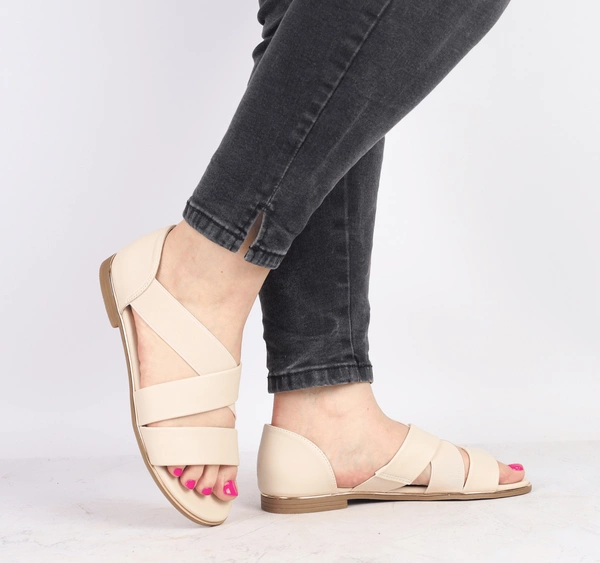 Beżowe sandały płaskie wsuwane z zakrytą piętą Jezzi