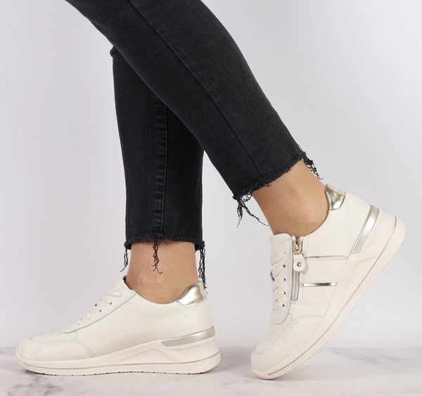 Białe skórzane adidasy damskie na zamek i sznurowadła Jezzi Comfort