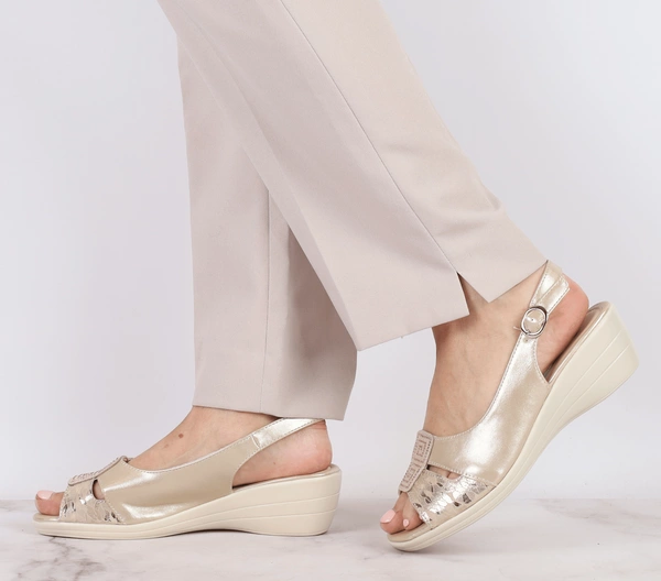 Lekkie sandały damskie na komfortowej koturnie szyte Jezzi