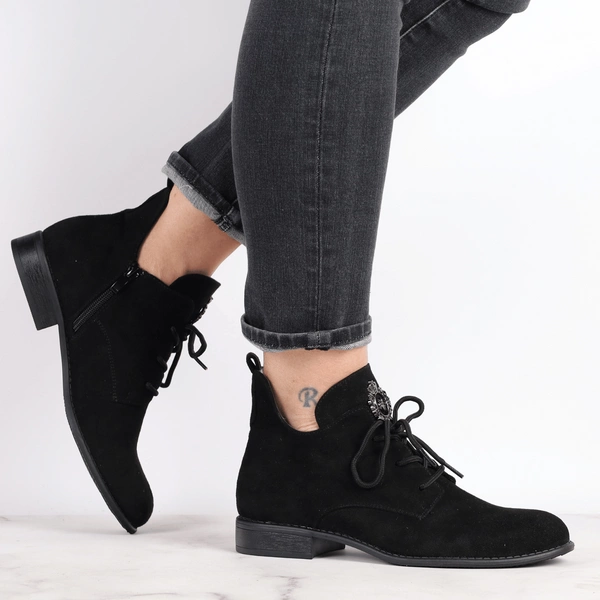 Czarne zamszowe botki płaskie komfortowe nieocieplane Jezzi