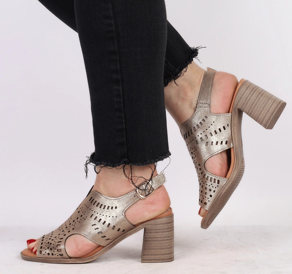 ( ilość produktów: 792 )Złote eleganckie sandały damskie na szerokim obcasie ażurowe Jezzi