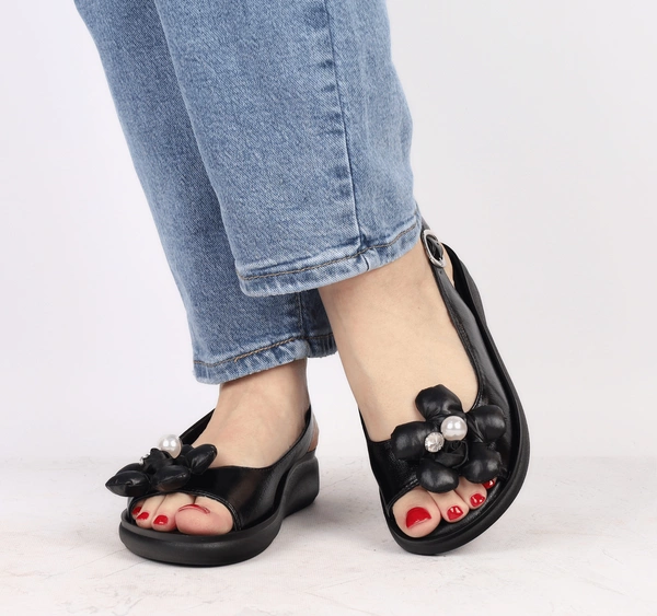 Czarne skórzane sandały damskie na płaskiej platformie rzymianki Jezzi