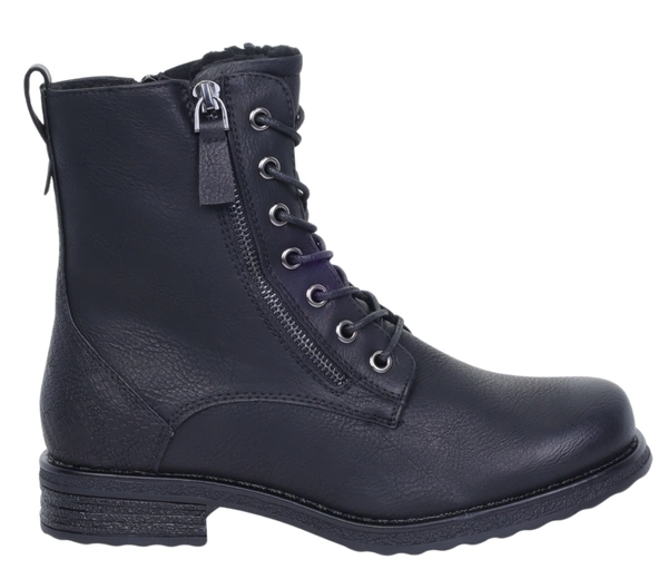 Czarne klasyczne botki damskie ocieplane na zamek i sznurowadła komfortowe Jezzi