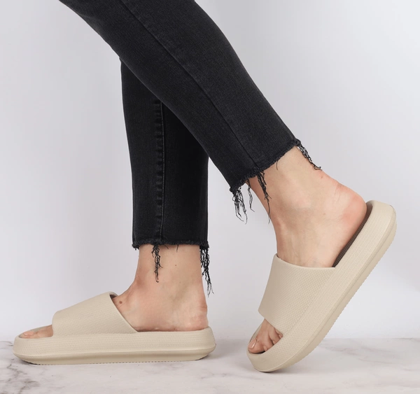 Beżowe klapki damskie piankowe na grubej platformie American Club