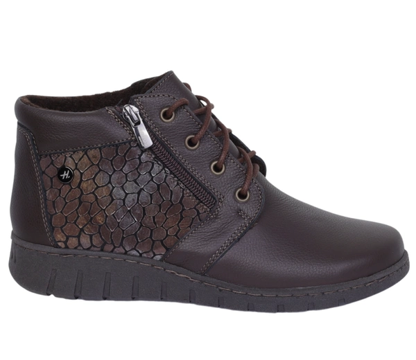 Brązowe czekoladowe botki zimowe damskie skórzane na szerokie stopy HELIOS