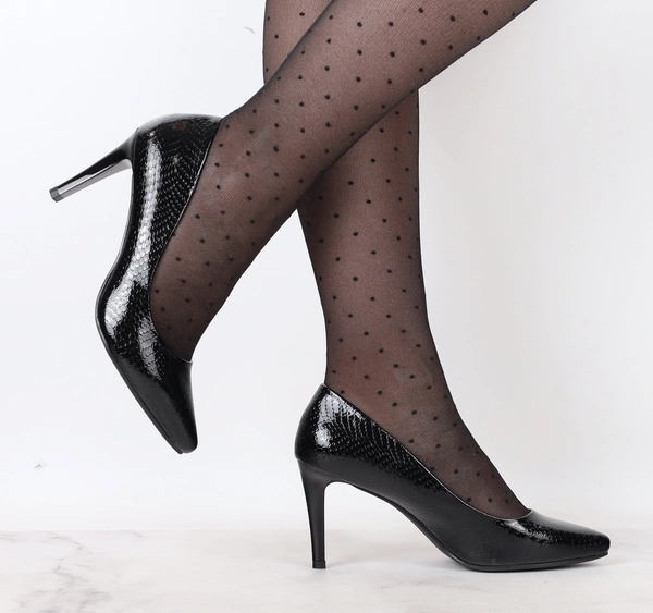 Czarne lakierowane szpilki w szpic Sergio Leone