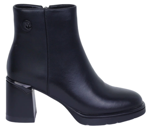 Eleganckie czarne botki damskie ze skóry naturalnej na obcasie Gino Fabiani