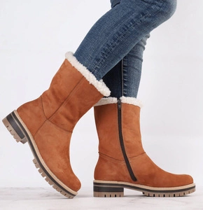 Wełniane kozaki brązowe damskie płaskie śniegowce Polskie Gino Fabiani