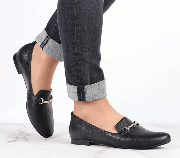 Czarne półbuty damskie wsuwane skórzane z klamerką RYŁKO