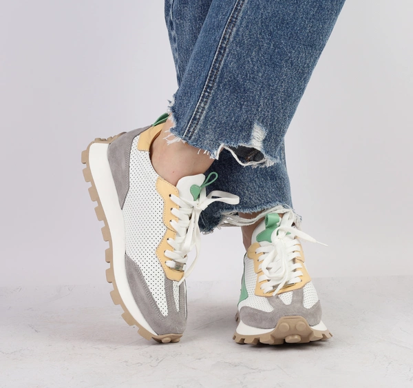 Skórzane kolorowe adidasy damskie oddychające na kauczukowej podeszwie MODO