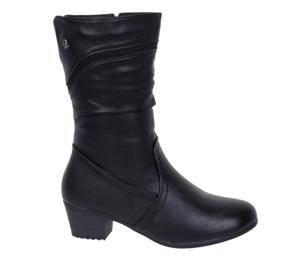 Eleganckie czarne kozaki damskie zimowe na średnim obcasie Jezzi