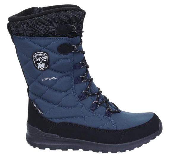 Granatowe wysokie śniegowce damskie z membraną porządne i ciepłe American Club