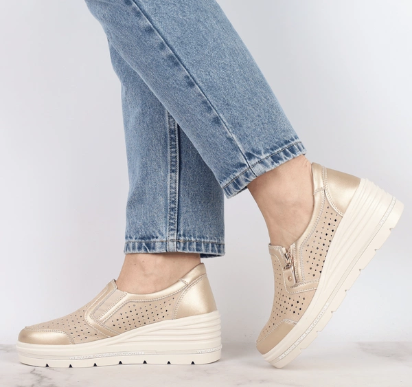 Złote mokasyny damskie komfortowe i eleganckie Jezzi