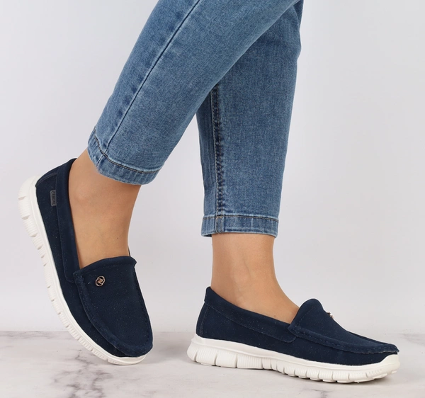 Granatowe mokasyny skórzane czółenka płaskie komfortowe Jezzi