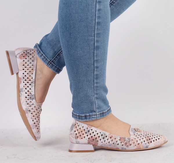 Różowe ażurowe półbuty wsuwane damskie czółenka płaskie Jezzi