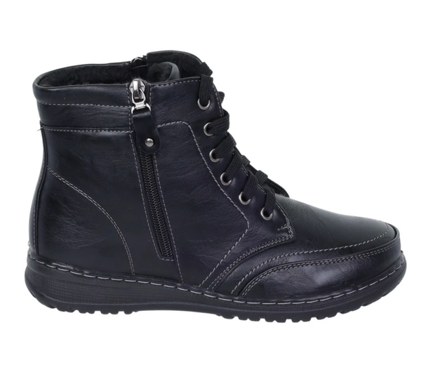 Czarne trzewiki damskie komfortowe botki zimowe ciepłe na zamek i sznurowadła HAIDRA