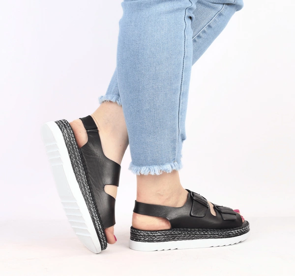Czarne skórzane sandały damskie na platformie regulowane paski MODO
