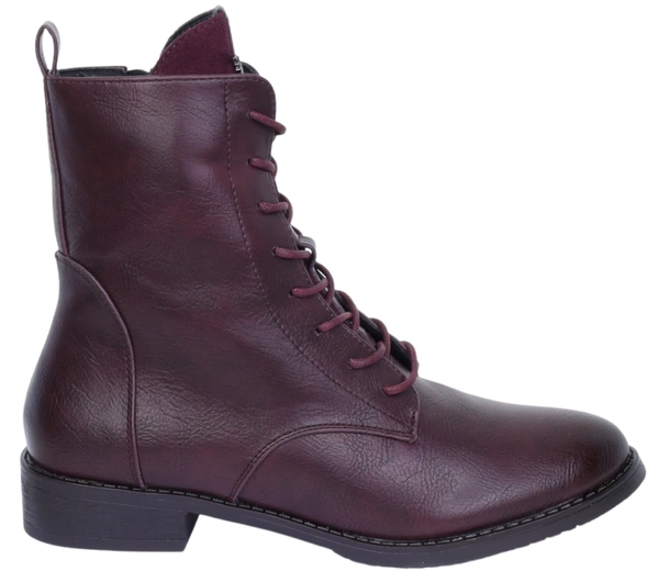 Bordowe botki damskie klasyczne na zamek i sznurowadła Jezzi