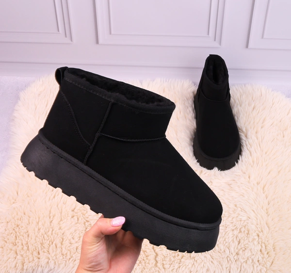 Czarne klasyczne emu zamszowe na platformie botki