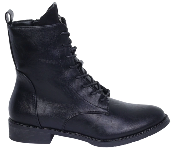 Czarne klasyczne botki damskie płaskie na zamek i sznurowadła Jezzi