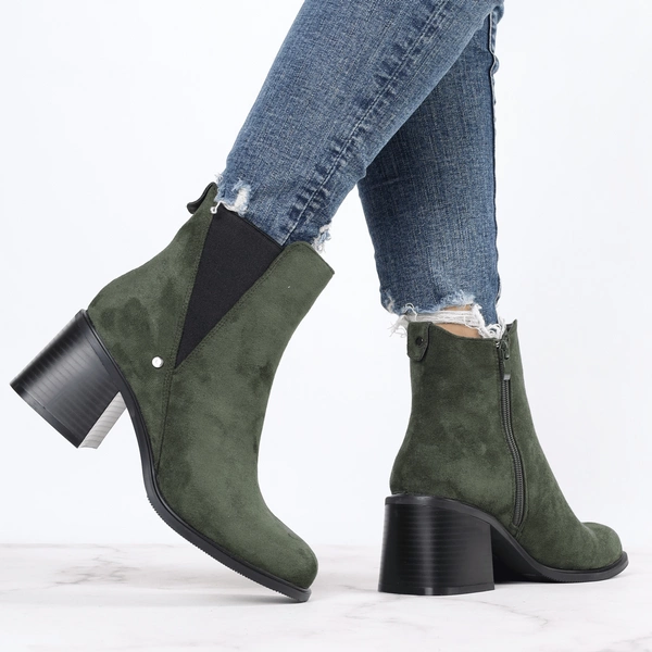Zielone zamszowe botki damskie zimowe eleganckie i komfortowe Jezzi