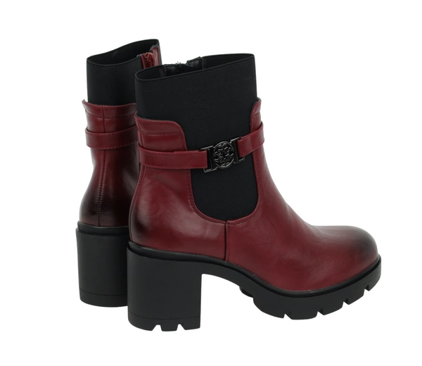 Bordowe botki damskie eleganckie na słupku półbuty zimowe Jezzi
