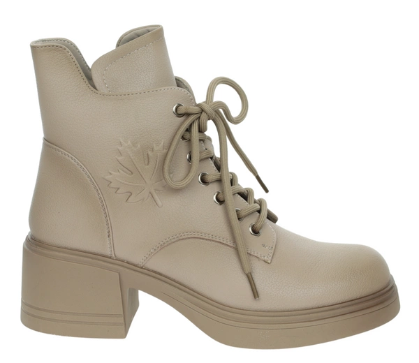 Beżowe ciepłe botki zimowe sznurowane na wygodnej podeszwie Jezzi