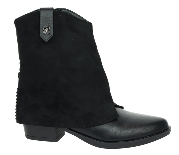 Czarne niskie botki kowbojki na wygodnym obcasie z wywiniętą cholewką Jezzi