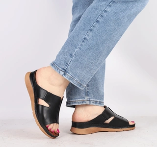 Czarne klapki damskie skórzane komfortowe na co dzień Jezzi
