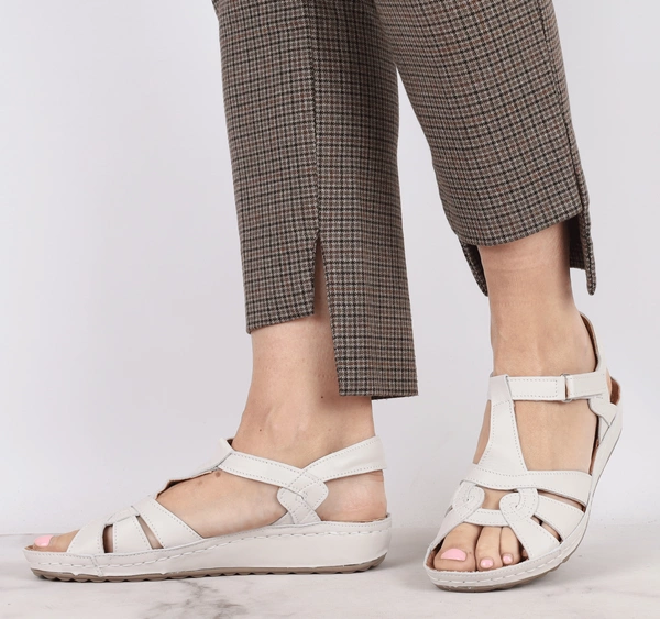 Skórzane białe sandały damskie eleganckie, lekkie i komfortowe Helios model 124