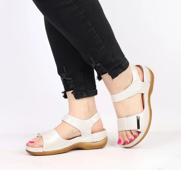 Beżowe sandały damskie ze skóry naturalnej zdrowotne Gino Fabiani - Produkt Polski