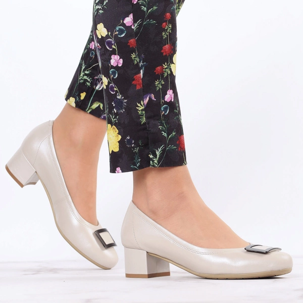 Beżowe czółenka na klocku skórzane z profilowaną wkładką Gino Fabiani