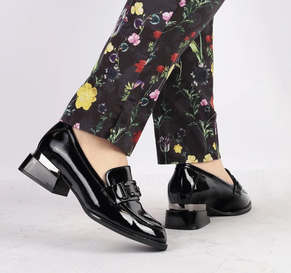 Eleganckie czarne półbuty damskie lakierowane mokasyny garniturowe VINCEZA