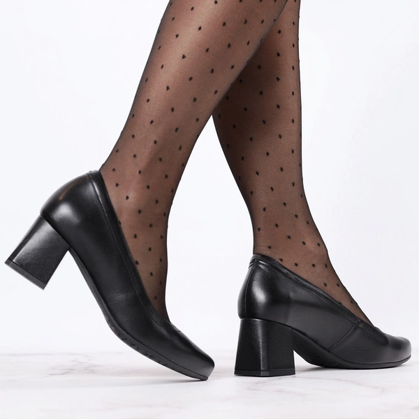 Czarne skórzane czółenka na lekkiej koturnie RYŁKO