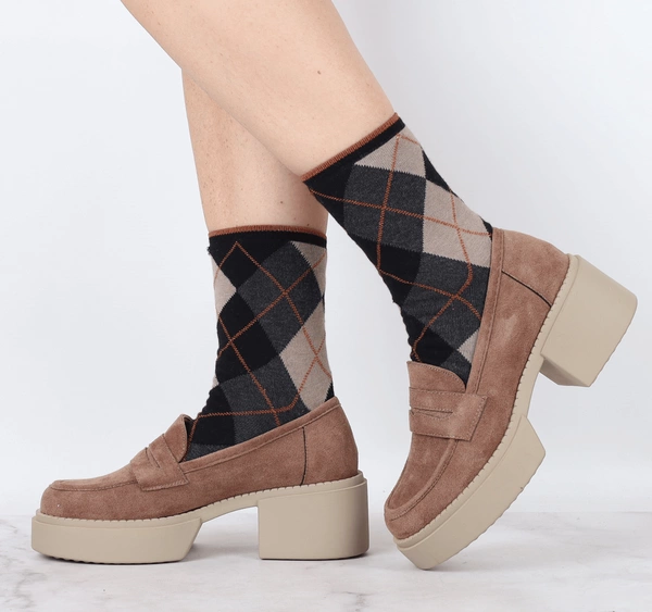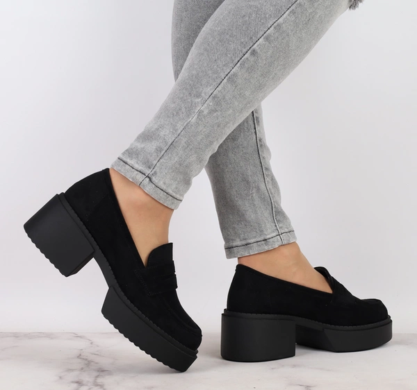 Fuksjowe mokasyny na klocku i platformie zamszowe Jezzi
