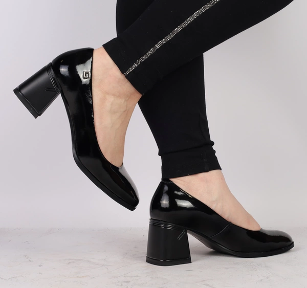 Czarne czółenka lakierowane na klocku Gino Fabiani - Produkt Polski