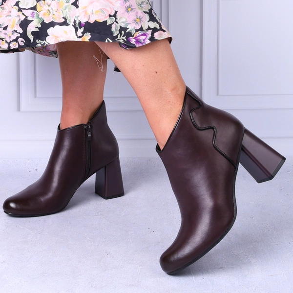 Bordowe skórzane półbuty damskie na obcasie jesienne ocieplane Jezzi
