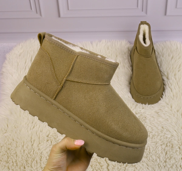 Beżowe zamszowe śniegowce EMU na platformie ciepłe botki- rozmiarówka zaniżona