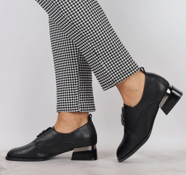 Wizytowe półbuty damskie skórzane na niskim obcasie VINCEZA