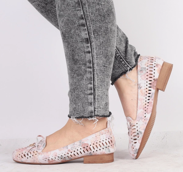 Różowe ażurowe półbuty wsuwane damskie czółenka płaskie Jezzi