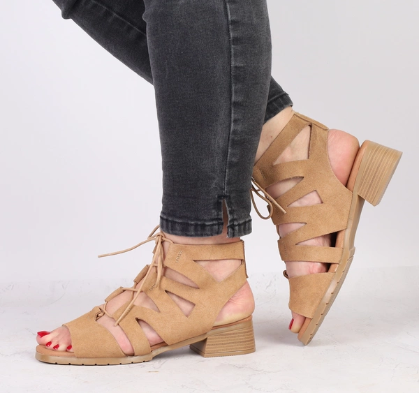 Beżowe sandały damskie na szerokim zamszowym klocku Jezzi