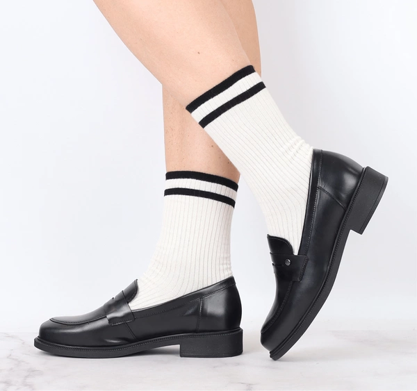 Czarne skórzane półbuty damskie płaskie eleganckie loafersy RYŁKO