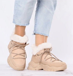 Zimowe półbuty damskie ocieplane beżowe sznurowane NEWS